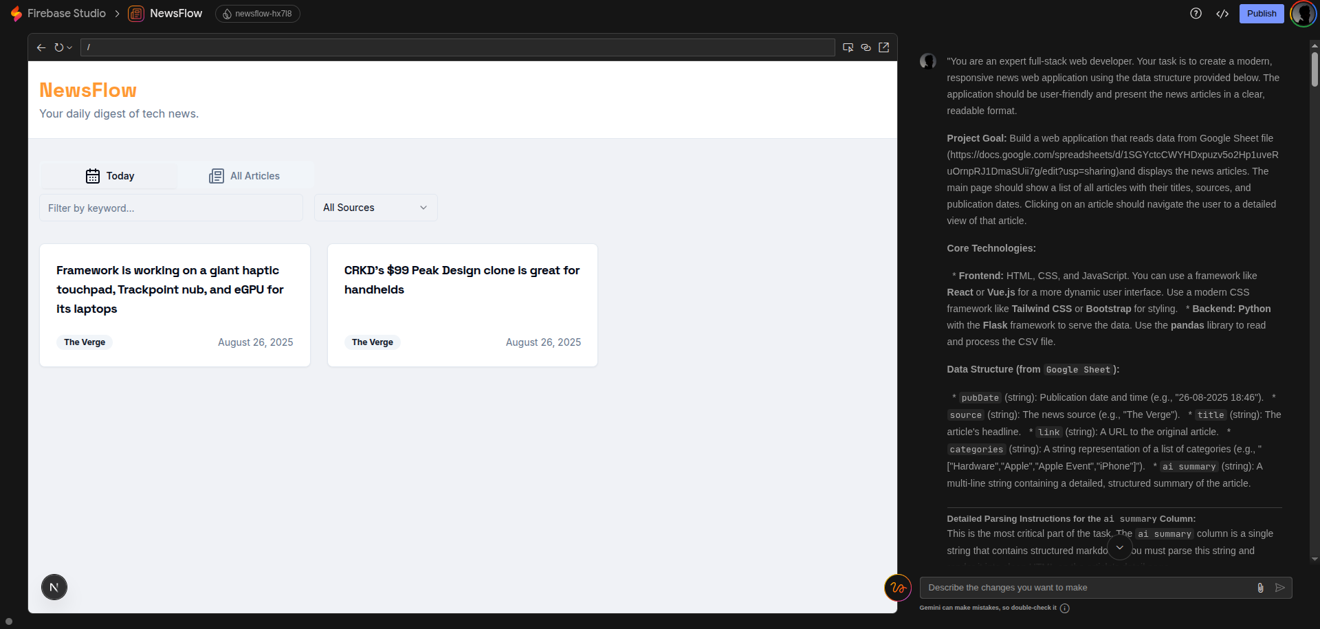 The Firebase took Gemini’s prompt and generated the entire frontend and a simple Python backend in minutes. It did in a moment what would have taken me a full day of coding.