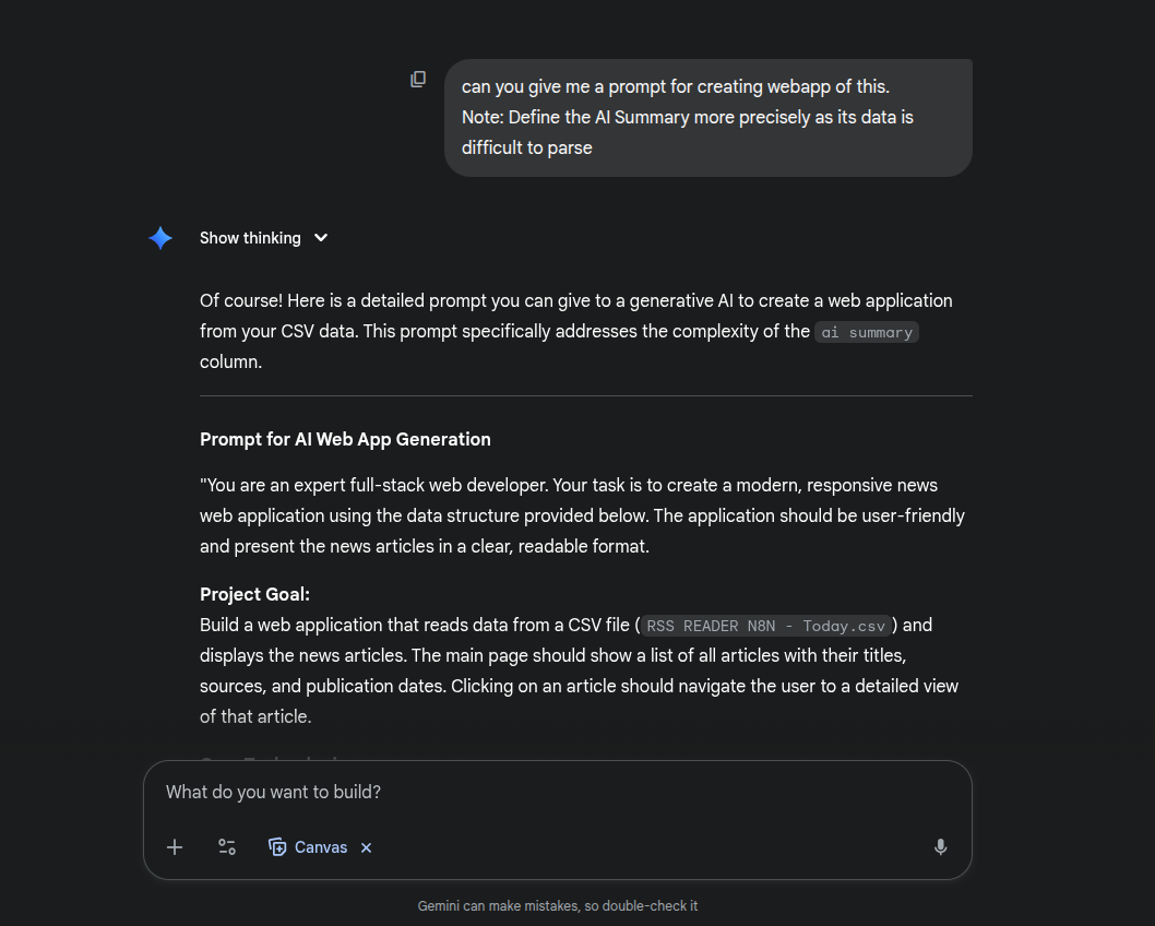 The key was prompt engineering. I didn’t just say “build me a news app.” I gave the AI specific instructions and generate a prompt from AI itself: